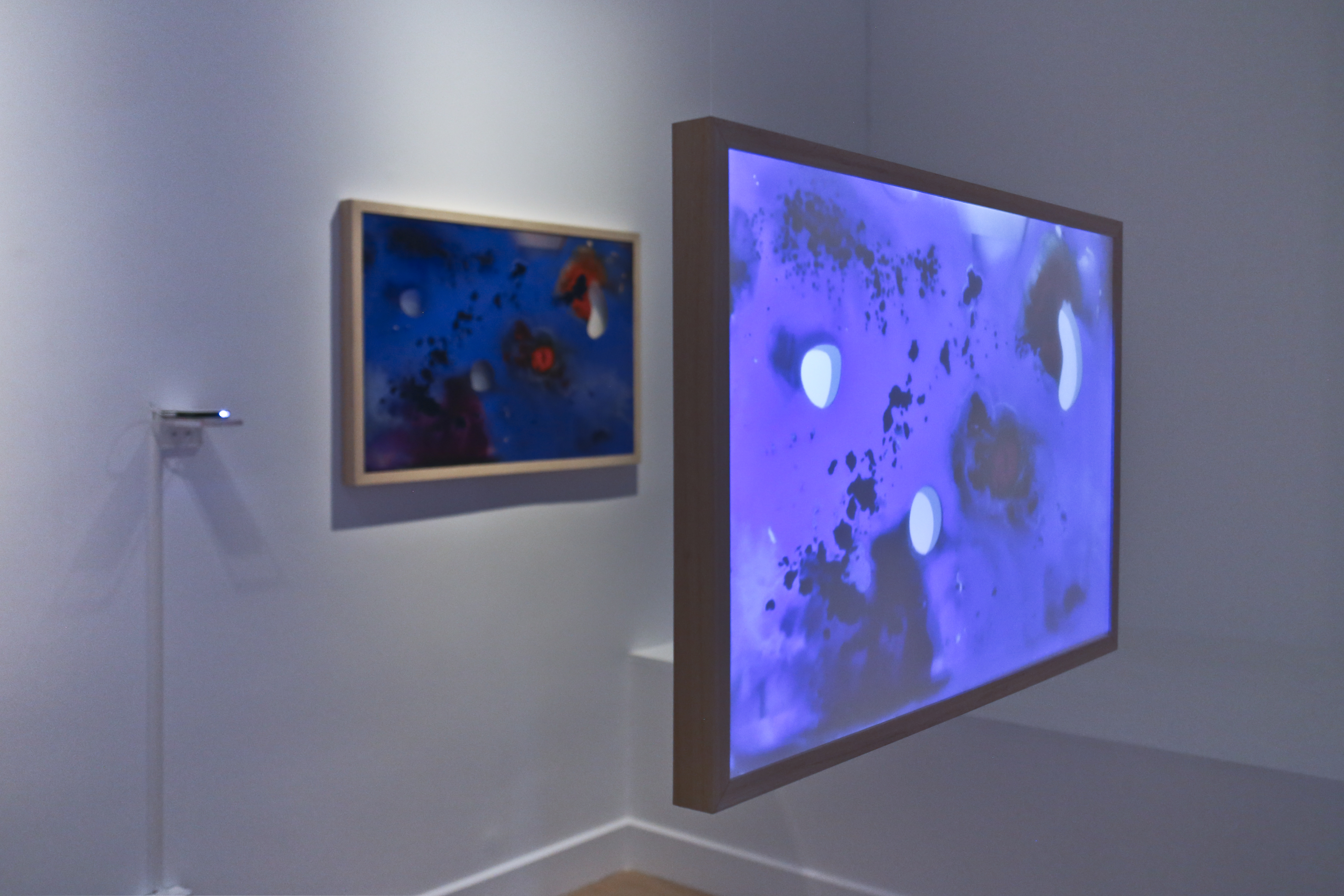 mimetic projecting screens that reproduce the pictorial artworks on video. When